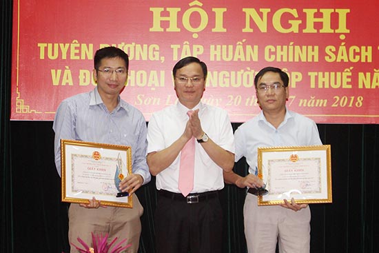 Lãnh đạo Cục Thuế tỉnh tặng Giấy Khen cho các tập thể chấp hành tốt nghĩa vụ nộp thuế.