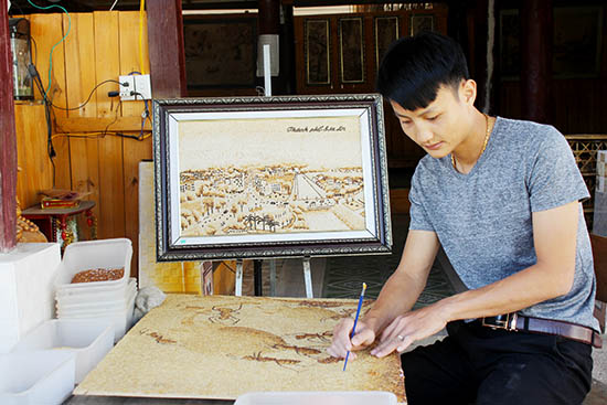 Mô hình sản xuất tranh gạo ở HTX Tranh gạo Sơn La (Thành phố).