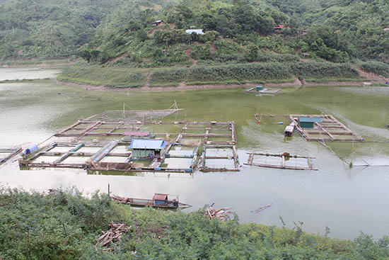 Người dân xã Quy Hướng phát triển nuôi cá lồng trên lòng hồ thủy điện Hòa Bình.