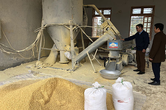 Trung tâm Dạy nghề và Hỗ trợ nông dân tỉnh đầu tư máy chế biến thức ăn thảo dược để chăn nuôi gà.