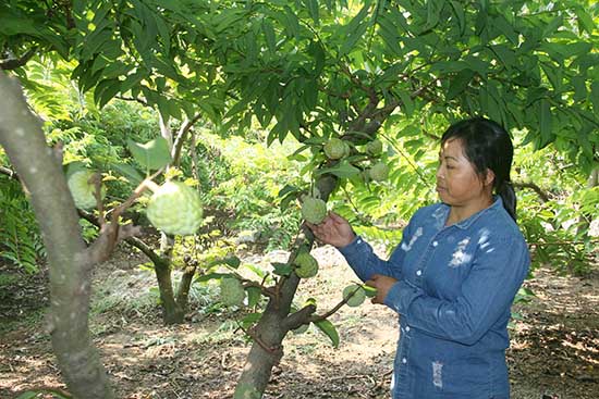 Nông dân xã Hát Lót (Mai Sơn) chăm sóc vườn na theo quy trình VietGAP.