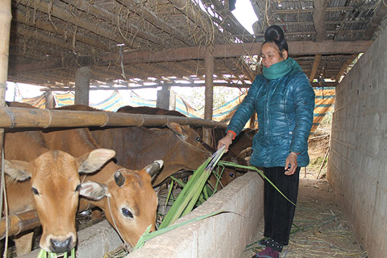 Người dân xã Chiềng Sàng (Yên Châu) chăm sóc đàn vật nuôi.