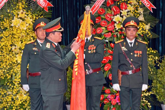 lên Quân kì Quyết thắng của Học viện Lục quân.