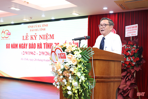 Phát biểu chúc mừng tại buổi lễ, Phó Bí thư Thường trực Tỉnh ủy Trần Thế Dũng biểu dương các thế hệ cán bộ, phóng viên, biên tập viên người lao động Báo Báo Hà Tĩnh đã không ngừng phấn đấu làm nên truyền thống vẻ vang, tự hào trong hành trình 60 năm qua.