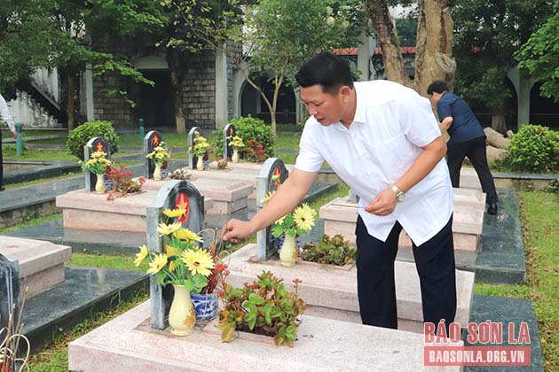Đồng chí Hoàng Quốc Khánh, Chủ tịch UBND tỉnh Sơn La thắp hương tưởng nhớ các Anh hùng liệt sĩ Điện Biên tại Nghĩa trang Đồi A1.