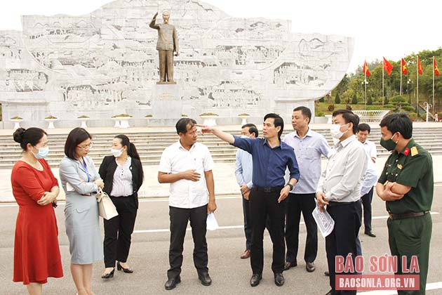 Các đại biểu khảo sát khu vực tổ chức Festival trái cây và sản phẩm OCOP Việt Nam năm 2022 tại tỉnh Sơn La.