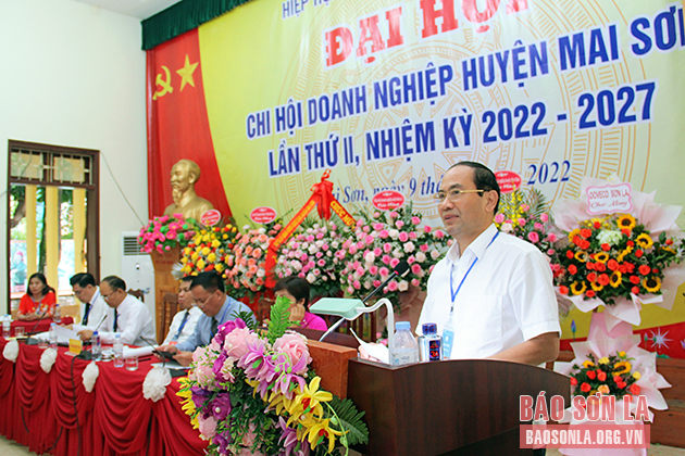 Phát biểu tại Đại hội, đồng chí Nguyễn Quốc Khánh, Chủ tịch Hiệp hội Doanh nghiệp tỉnh ghi nhận, đánh giá cao những kết quả Chi hội Doanh nghiệp huyện Mai Sơn đạt được trong nhiệm kỳ qua, đồng thời đề nghị, Ban Chấp hành Chi hội Doanh nghiệp Mai Sơn nhiệm kỳ mới phát huy vai trò là cầu nối, đại diện cho tiếng nói của doanh nghiệp hội viên để kiến nghị với các cấp có thẩm quyền giải quyết tháo gỡ khó khăn cho doanh nghiệp; tập trung cải thiện môi trường đầu tư kinh doanh, hỗ trợ nhau cùng phát triển, tiếp tục tạo việc làm cho lao động địa phương, đóng góp ngân sách Nhà nước và tích cực tham gia các hoạt động an sinh xã hội, hoàn thành mục tiêu mà Đại hội Chi hội huyện Mai Sơn nhiệm kỳ 2022 - 2027 đề ra, góp phần thúc đẩy phát triển kinh tế - xã hội huyện nhà.