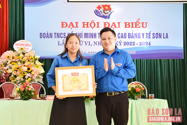 Lãnh đạo Trường cao đẳng Y tế Sơn La và Tỉnh đoàn tặng hoa chúc mừng Ban Chấp hành Đoàn nhiệm kỳ 2022 - 2024.