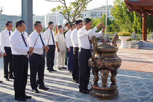 Các đồng chí lãnh đạo tỉnh dâng hương Đền thờ Bác Hồ tại Quảng trường Tây Bắc.