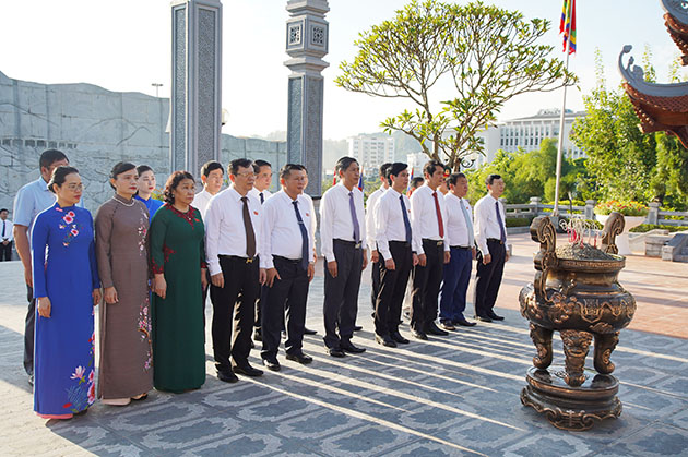 Các đồng chí lãnh đạo Thành ủy, HĐND, UBND, Ủy ban MTTQ Việt Nam Thành phố dâng hương tại Đền thờ Bác Hồ.
