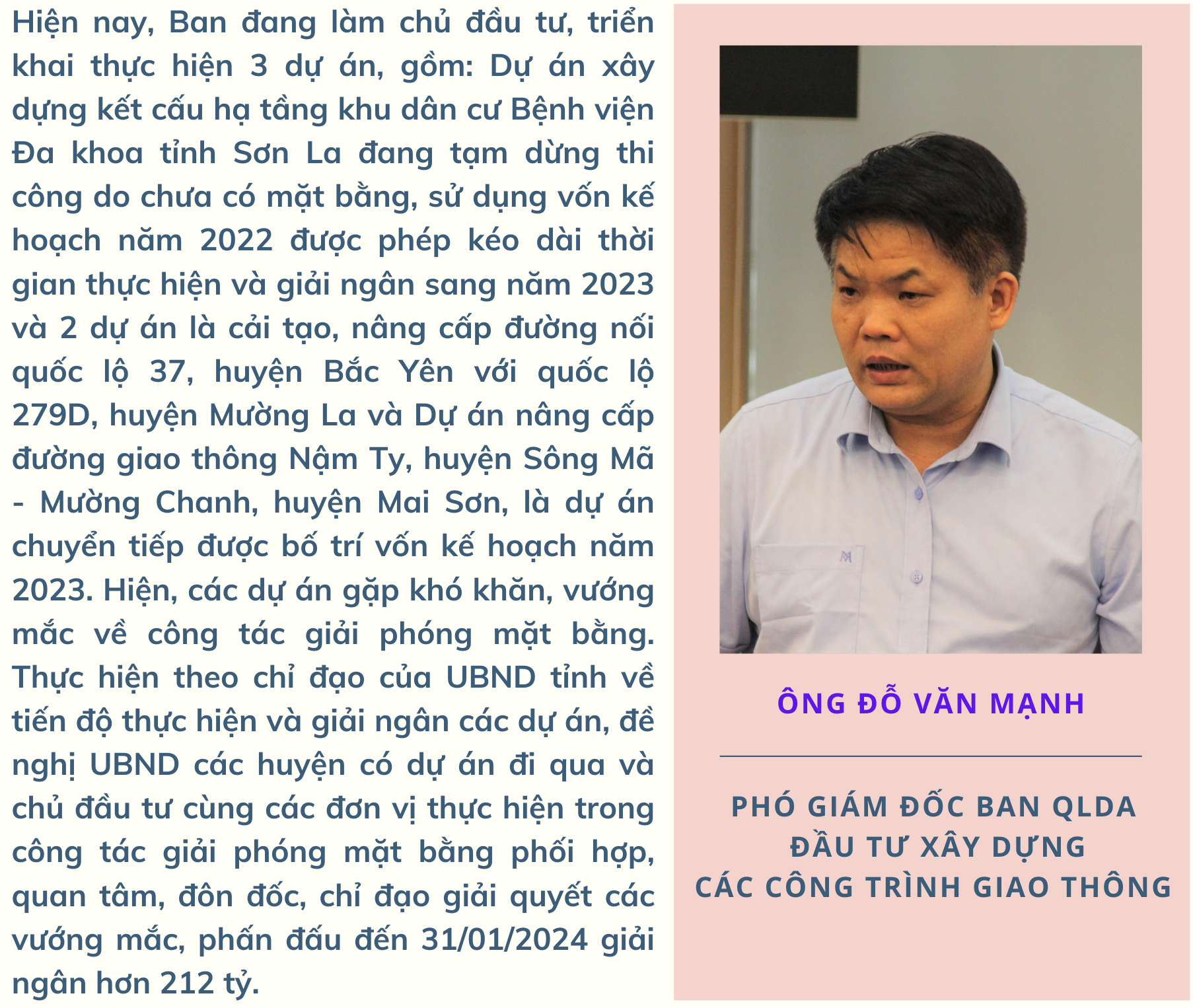 Đặc biệt, tình trạng khan hiếm nguyên vật liệu xây dựng của các dự án đang triển khai trên địa bàn huyện Quỳnh Nhai, Mai Sơn, Sốp Cộp và Thuận Châu ảnh hưởng lớn đến tiến độ thi công. Nhiều gói thầu đã thi công hoàn thành các hạng mục nền, chuyển sang hạng mục chuẩn bị đổ bê tông xi măng mặt đường nhưng nguồn vật liệu đá, cát chủ yếu phải lấy từ Điện Biên, Lai Châu và từ thành phố Sơn La vào công trình, nên việc thi công cầm chừng do giá cước tăng cao. Một số dự án gặp khó khăn do trùng tuyến, địa điểm xây dựng giữa các chương trình, dự án phải rà soát điều chỉnh dự án, điều chỉnh chủ trương; một số dự án thành phần trùng lặp hướng tuyến và địa điểm xây dựng với các dự án khác đã và đang thực hiện.