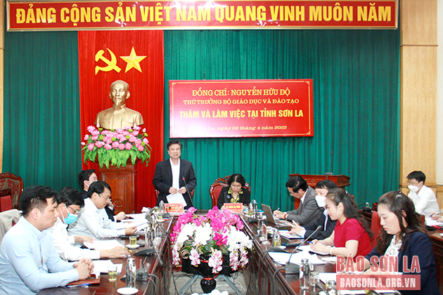 Phát biểu tại cuộc làm việc, đồng chí Thứ trưởng Bộ Giáo dục và Đào tạo đánh giá cao sự quan tâm, chỉ đạo quyết liệt của tỉnh Sơn La đối với hoạt động giáo dục và đào tạo. Đồng thời, đề nghị ngành Giáo dục và Đào tạo tỉnh Sơn La tăng cường tuyên truyền và chủ động triển khai thực hiện tốt chương trình đổi mới giáo dục phổ thông theo hướng chuyển từ nặng về truyền thụ kiến thức sang phát triển phẩm chất, năng lực, chất lượng đào tạo và nhu cầu xã hội. Nâng cao chất lượng đội ngũ giáo viên; tăng cường trang thiết bị dạy học, đáp ứng cho việc triển khai chương trình giáo dục phổ thông mới...