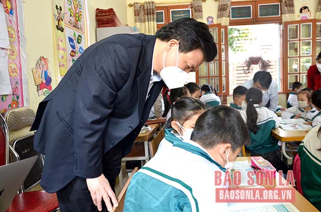 Đồng chí Thứ trưởng Bộ Giáo dục và Đào tạo dự giờ tiết học tại Trường tiểu học Mộc Lỵ, huyện Mộc Châu.