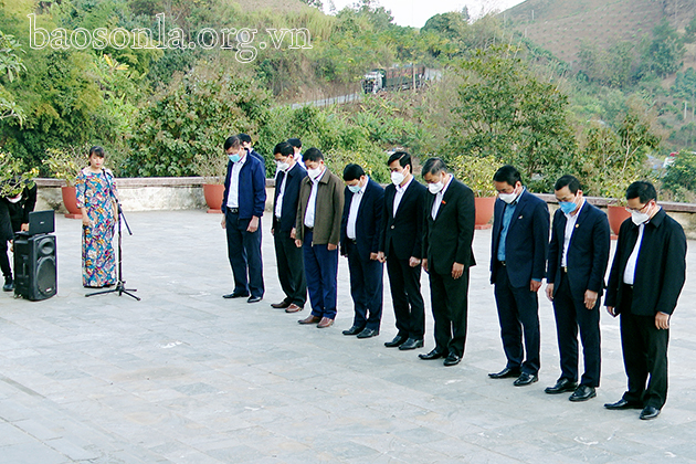 Đoàn công tác của Thường trực Tỉnh ủy, UBND tỉnh dâng hương tại Đài tưởng niệm liệt sĩ TNXP Ngã ba Cò Nòi, huyện Mai Sơn.