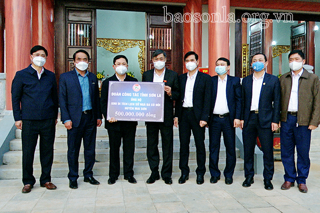 Nhân dịp này, Đoàn công tác đã trao 500 triệu đồng ủng hộ Khu di tích lịch sử Ngã Ba Cò Nòi, huyện Mai Sơn.