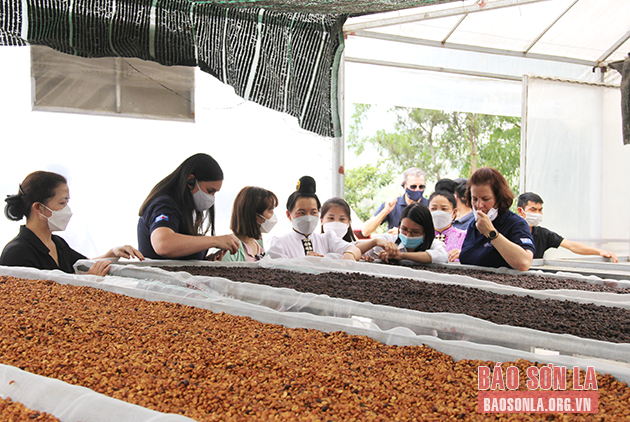 Đoàn công tác Đại sứ quán Australia tại Việt Nam thăm HTX ARA - Tay Coffee tại xã Chiềng Chung, huyện Mai Sơn.