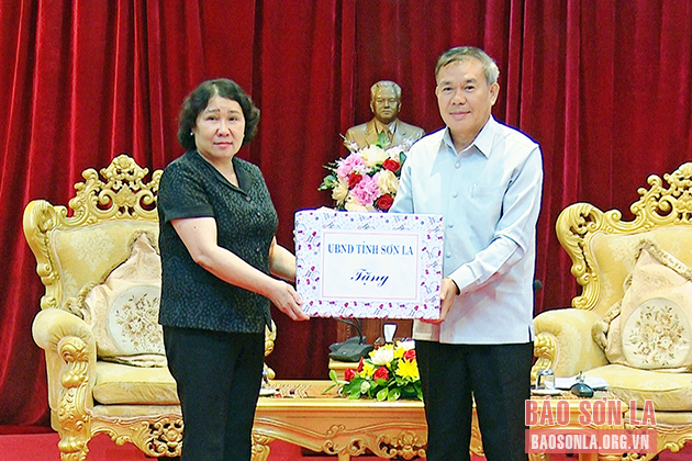 Đoàn công tác tỉnh Sơn La tặng quà Đảng bộ và Chính quyền tỉnh Luông Pha Băng.
