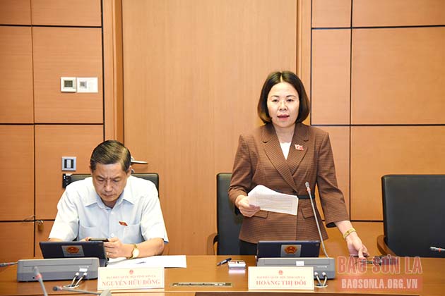 Đại biểu Hoàng Thị Đôi phát biểu tại phiên họp Tổ.