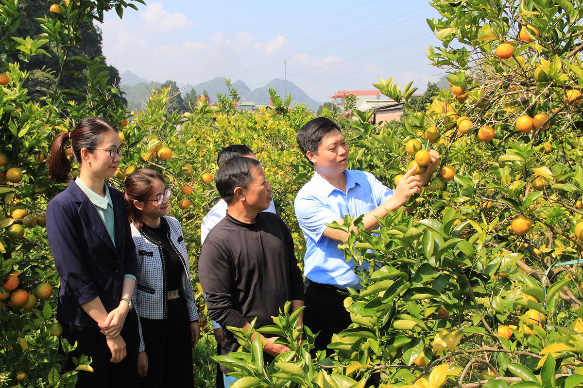 Lãnh đạo huyện Thuận Châu tham quan mô hình trồng cam theo hướng hữu cơ tại xã Chiềng Pha.