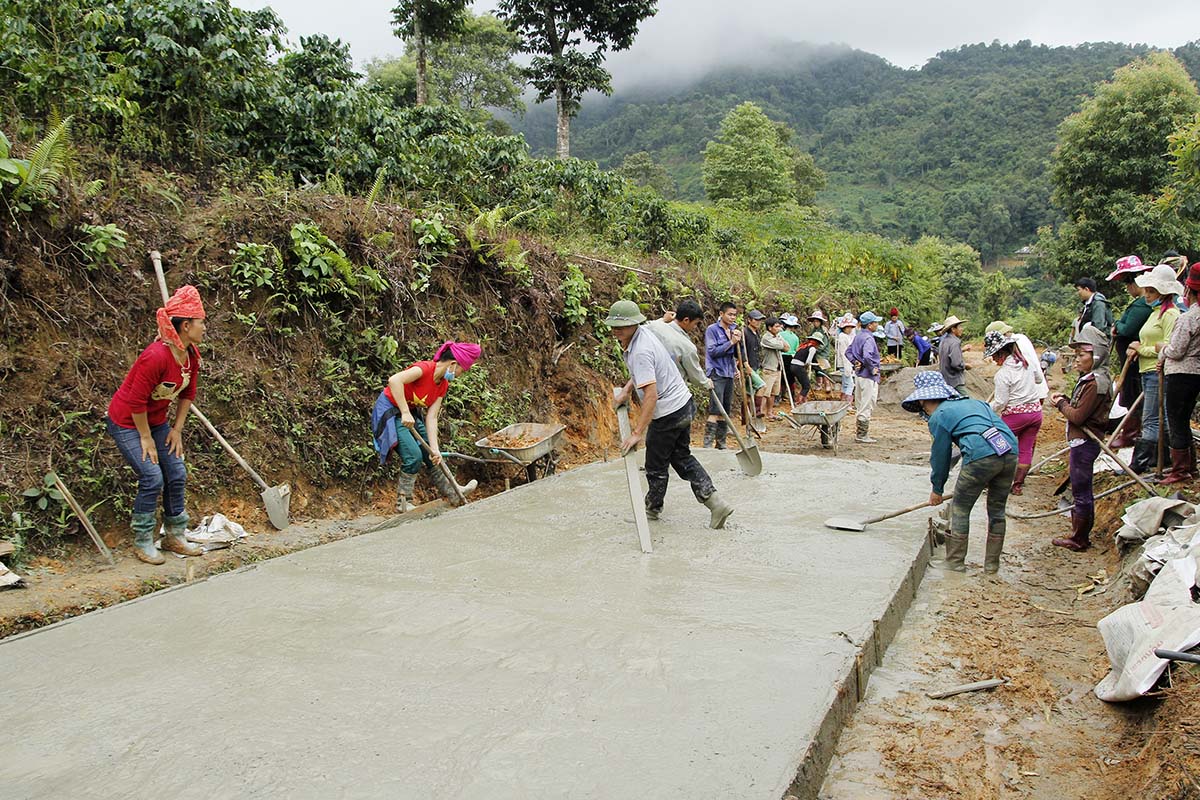 Làm đường giao thông nông thôn ở xã Chiềng Bôm.