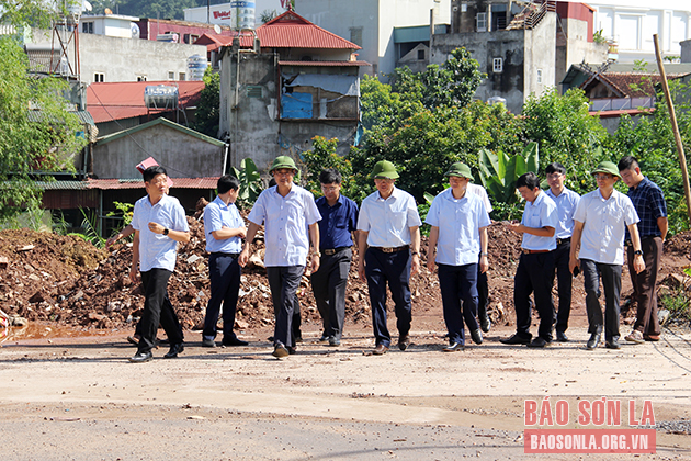 Kiểm tra tiến độ thi công dự án khu đô thị Buổn, phường Chiềng Cơi.