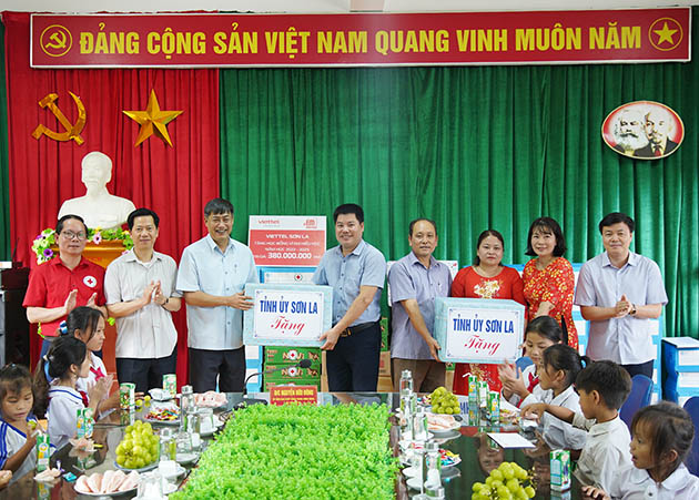 Nhân dịp này, đồng chí Bí thư Tỉnh ủy đã tặng quà cho thầy và trò Trường tiểu học và THCS Huy Thượng; Hội Chữ Thập đỏ tỉnh đã trao 150 suất quà; Viettel Sơn La tặng 190 suất học bổng, trị giá 2 triệu đồng/suất cho các em học sinh huyện Phù Yên.