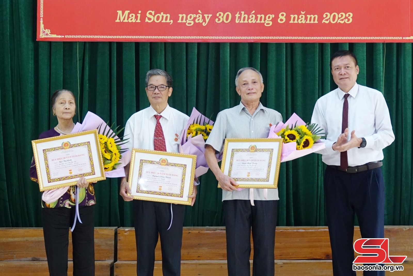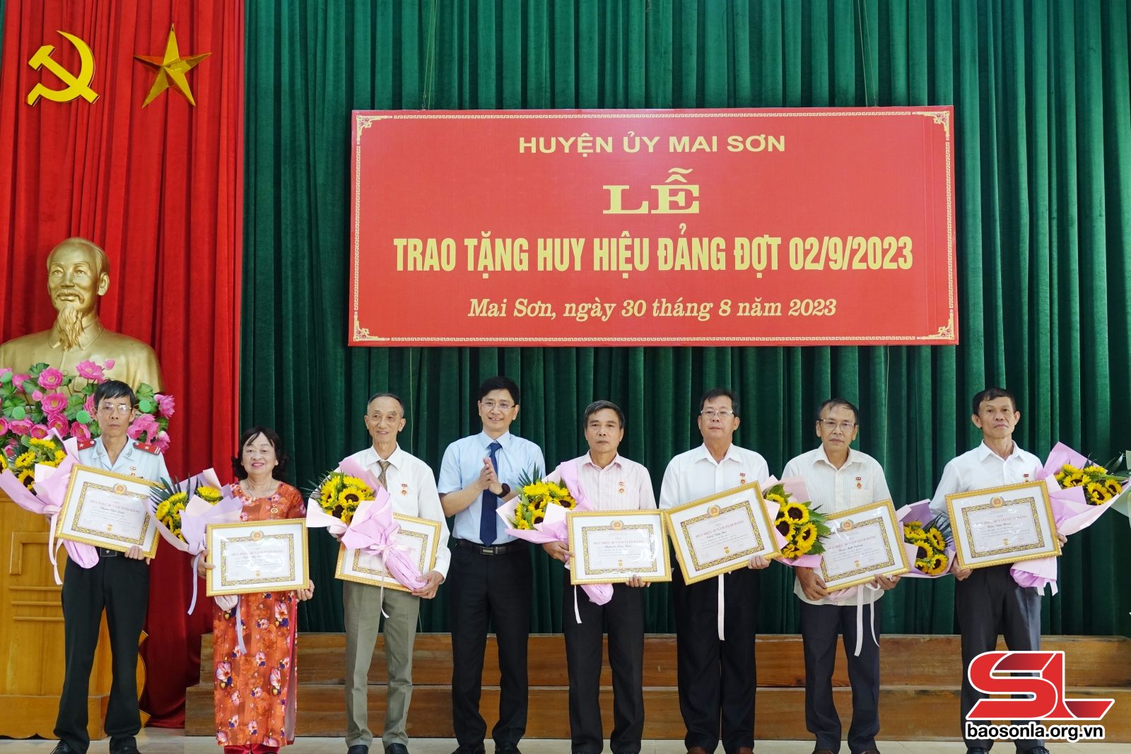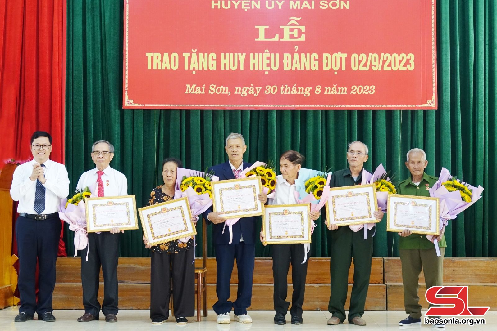 Đợt 2/9 năm 2023, Đảng bộ huyện Mai Sơn có 108 đảng viên vinh dự được tặng, truy tặng Huy hiệu Đảng. Trong đó, có 1 đảng viên vinh dự được nhận Huy hiệu Đảng 75 năm; 1 đảng viên nhận Huy hiệu Đảng 70 năm; 8 đảng viên nhận Huy hiệu Đảng 60 năm; 15 đảng viên nhận Huy hiệu Đảng 55 năm; 6 đảng viên nhận Huy hiệu Đảng 50 năm; 7 đảng viên nhận Huy hiệu 45 năm; 25 đảng viên nhận Huy hiệu Đảng 40 năm; 43 đảng viên nhận Huy hiệu Đảng 30 năm và truy tặng Huy hiệu Đảng 55 năm đối với 2 đồng chí.
