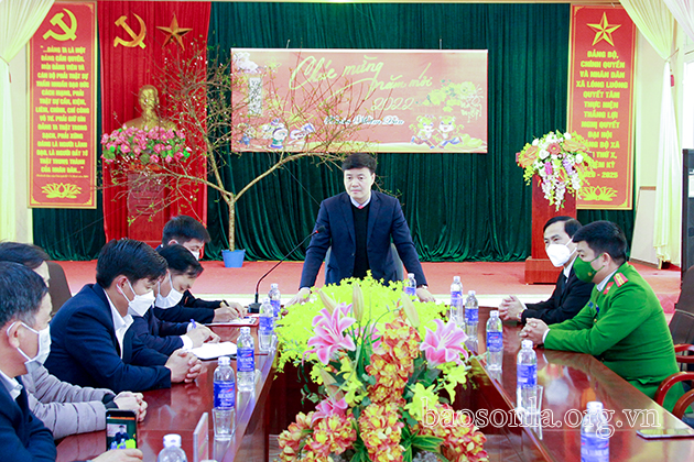 Thăm chúc Tết tại xã Vân Hồ, Lóng Luông, đồng chí Giám đốc Công an tỉnh đề nghị Đảng bộ, chính quyền các xã tiếp tục đẩy mạnh việc thực hiện Nghị quyết Đại hội Đảng các cấp; tiếp tục đẩy mạnh chuyển đổi cơ cấu cây trồng, vật nuôi, từng bước nâng cao thu nhập, xóa đói, giảm nghèo cho người dân; tuyên truyền vận động nhân dân thực hiện tốt quy định phòng chống dịch; đảm bảo công tác giữ gìn an ninh trật tự, an toàn xã hội trên địa bàn; chăm lo cho người dân, nhất là những hộ nghèo, gia đình chính sách đón Tết vui vẻ, đầm ấm, an toàn...