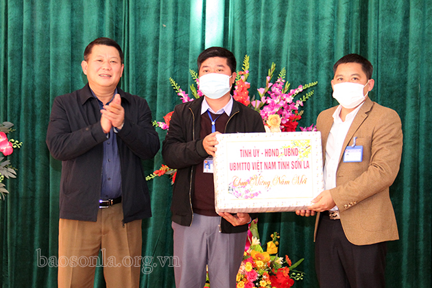 Thăm và chúc Tết xã Mường Giôn – xã vừa được UBND tỉnh công nhận đạt chuẩn nông thôn mới năm 2021, Đoàn công tác đã nghe lãnh đạo xã báo cáo tình hình của xã và công tác chuẩn bị cho nhân dân vui xuân đón Tết Nguyên đán Nhâm Dần 2022. Đồng chí Phó Bí thư Thường trực tỉnh ủy đã gửi lời chúc Tết đến bà con nhân dân, mong muốn cấp ủy, chính quyền xã tiếp tục đoàn kết, cùng nhân dân tập trung phát triển kinh tế, giữ vững và nâng cao chất lượng các tiêu chí nông mới…. Đồng thời, đề nghị xã Mường Giôn quan tâm, chăm lo Tết cho người nghèo, gia đình chính sách trên địa bàn, không để ai không có Tết; làm tốt việc tuyên truyền để người lao động, nhân dân di chuyển từ vùng có dịch về quê đón Tết thực hiện nghiêm các biện pháp phòng chống dịch bệnh theo khuyến cáo của cơ quan y tế; tổ chức các hoạt động vui xuân, đón Tết phù hợp với điều kiện phòng, chống dịch bệnh...