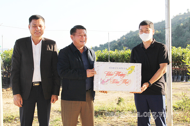Nhân dịp Tết Nguyên đán 2022, đồng chí Lò Minh Hùng và đại diện Công ty Xổ số kiến thiết Sơn La đã trao tặng quà cho 40 hộ nghèo. Đoàn công tác của tỉnh đã thăm mô hình trồng cây Mắc ca của HTX Mường Giôn.