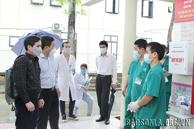 Đoàn công tác kiểm trang khu thu dung, điều trị F0 tại Bệnh viện Đa khoa huyện Phù Yên.