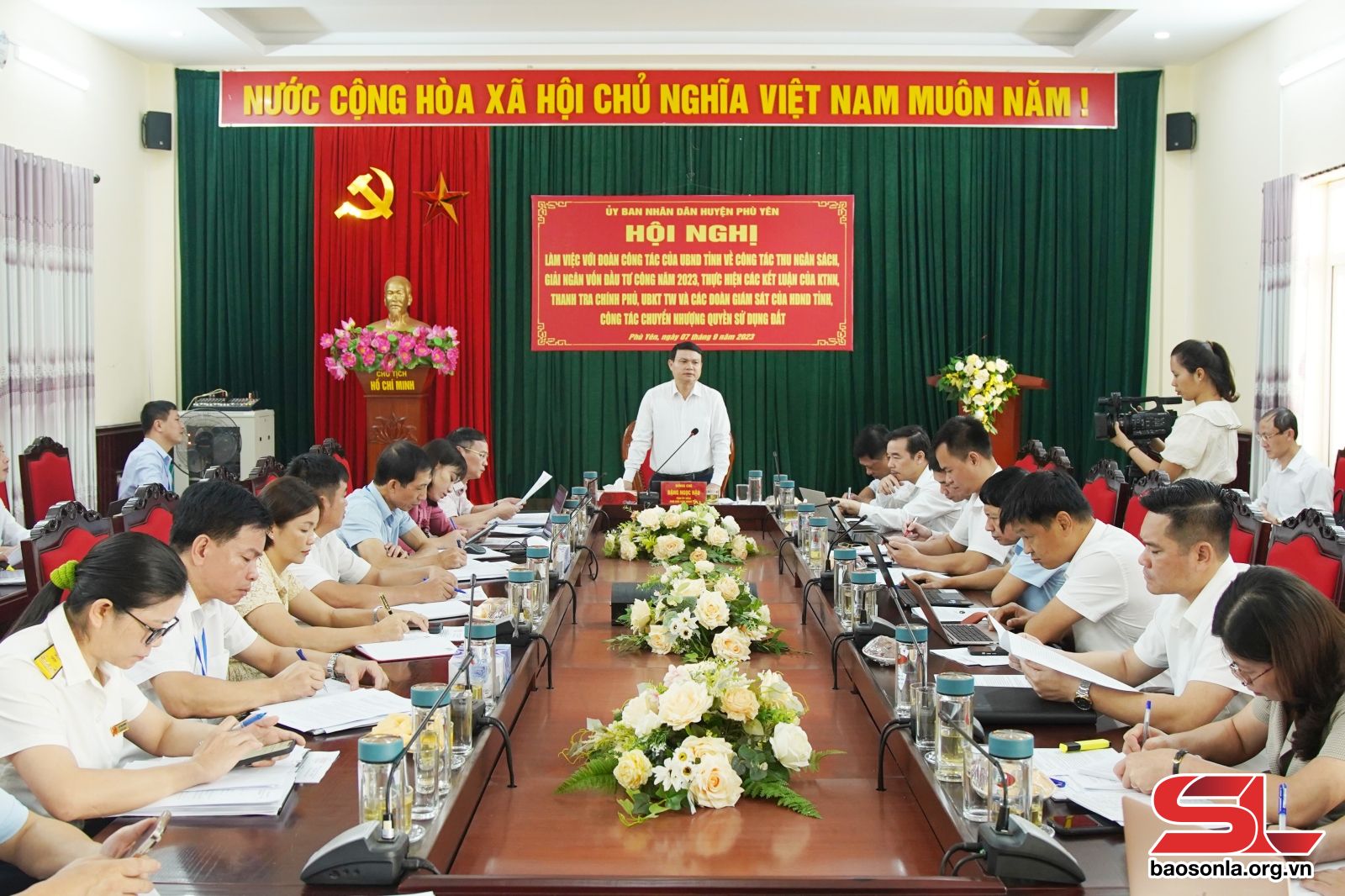 Tại cuộc họp, các sở, ngành đã đề nghị UBND huyện Phù Yên tiếp tục triển khai các dự án đầu tư công cần thực hiện trong năm 2023 nhằm đảm bảo tiến độ giải ngân vốn đầu tư công; cần tăng rà soát các đơn vị còn nợ đọng thuế, các khoản thu ngân sách trên địa bàn; thu hồi đất, giải phóng mặt bằng trên hành lang giao thông; hoàn thành Đề án quy hoạch mở rộng thị trấn Phù Yên theo đúng tiến độ đã báo cáo Ban Thường vụ Tỉnh ủy.