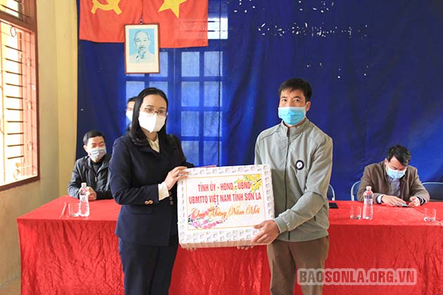 Đồng chí Đinh Thị Bích Thảo tặng quà Tết cho xã Chiềng Ngàm.
