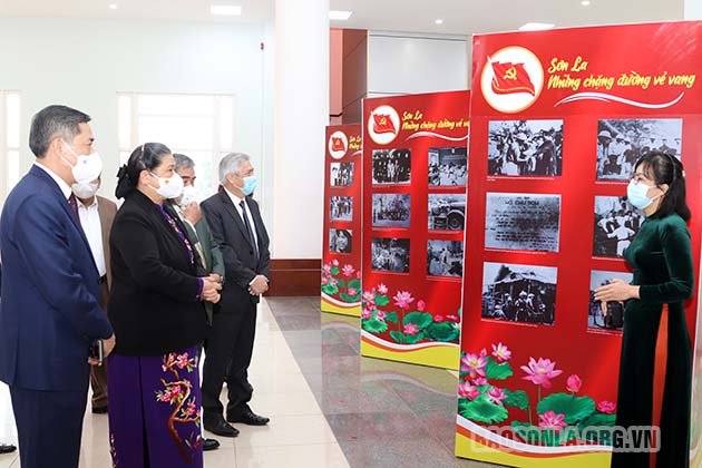Đồng chí Bí thư tỉnh ủy cùng các đại biểu xem triển lãm ảnh Sơn La những chặng đường vẻ vang.