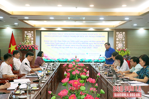 Ngày 26/9, đồng chí Chá A Của, Phó Chủ tịch HĐND tỉnh đã chủ trì cuộc giám sát việc thực hiện liên quan đến Nghị quyết số 122/2019/NQ-HĐND ngày 6/12/2019 của HĐND tỉnh về chính sách khuyến khích bác sĩ, dược sĩ về công tác tại tỉnh Sơn La, giai đoạn 2020-2025. Dự cuộc giám sát, có đồng chí Tráng Thị Xuân, Ủy viên Ban thường vụ Tỉnh ủy, Phó Chủ tịch Thường trực UBND tỉnh; lãnh đạo một số sở, ban, ngành.