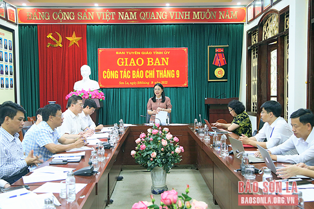 Định hướng tuyên truyền tháng 10, đồng chí Trưởng Ban Tuyên giáo Tỉnh ủy đề nghị: Các cơ quan báo chí tiếp tục tuyên truyền việc triển khai thực hiện đưa nghị quyết của Đảng vào cuộc sống. Tuyên truyền Chỉ thị số 16-CT/TW ngày 10/8/2022 của Ban Bí thư về lãnh đạo đại hội Hội Nông dân các cấp và Đại hội đại biểu toàn quốc Hội Nông dân Việt Nam lần thứ VIII, nhiệm kỳ 2023 - 2028. Tiếp tục thông tin, tuyên truyền công tác xây dựng Đảng, củng cố hệ thống chính trị ở cơ sở, công tác kiểm tra, giám sát, phòng, chống tham nhũng; công tác phòng, chống dịch Covid-19, chiến dịch tiêm chủng vắc xin phòng Covid-19, phòng chống một số dịch bệnh khác trên địa bàn; quảng bá, giới thiệu về nông sản Sơn La, các giải pháp của tỉnh trong việc hỗ trợ tiêu thụ và xuất khẩu nông sản cho nhân dân...