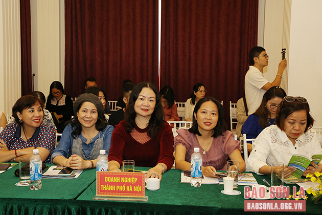 Các đại biểu, doanh nghiệp, công ty lữ hành của tỉnh Sơn La và thành phố Hà Nội trao đổi kinh nghiệm phát triển du lịch.