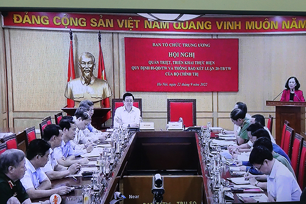 Ngày 22/9, các đồng chí: Trương Thị Mai, Ủy viên Bộ Chính trị, Bí thư Trung ương Đảng, Trưởng Ban Tổ chức Trung ương; Mai Văn Chính, Ủy viên Trung ương Đảng, Phó Trưởng ban Thường trực Ban Tổ chức Trung ương đã chủ trì Hội nghị trực tuyến quán triệt, triển khai thực hiện Quy định số 80-QĐ/TW và Thông báo Kết luận số 20-TB/TW của Bộ Chính trị. Dự tại điểm cầu Sơn La có các đồng chí: Nguyễn Hữu Đông, Ủy viên Ban Chấp hành Trung ương Đảng, Bí thư Tỉnh ủy, Trưởng Đoàn đại biểu Quốc hội tỉnh; Lê Hồng Long, Ủy viên Ban Thường vụ Tỉnh ủy, Trưởng Ban Tổ chức Tỉnh ủy; lãnh đạo một số sở, ban, ngành của tỉnh.