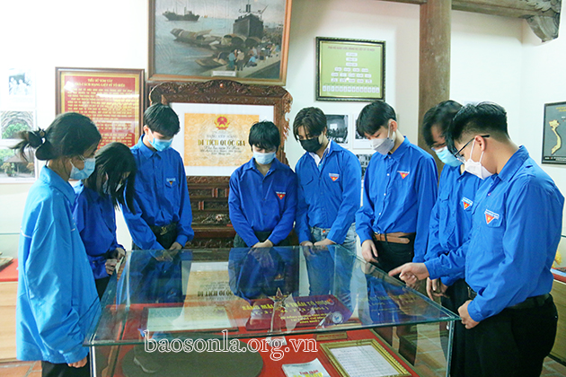 Đoàn viên, thanh niên tham quan các tài liệu, hiện vật trưng bày tại Hội thảo.