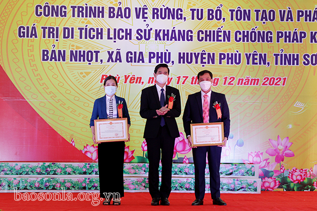 Nhân dịp này, UBND tỉnh đã tặng Bằng khen cho 2 tập thể, UBND huyện Phù Yên tặng Giấy khen cho 6 tập thể, 17 cá nhân có thành tích trong thực hiện nhiệm vụ đầu tư xây dựng các dự án bảo vệ rừng, tu bổ, tôn tạo và phát huy giá trị di tích lịch sử kháng chiến chống Pháp Khu rừng bản Nhọt, xã Gia Phù.