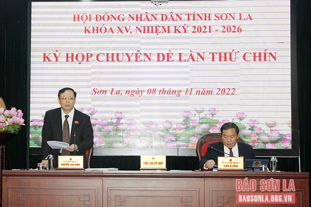 Ngày 8/11, HĐND tỉnh khóa XV, nhiệm kỳ 2021-2026 đã tổ chức Kỳ họp chuyên đề lần thứ chín. Các đồng chí Nguyễn Thái Hưng, Ủy viên Ban Thường vụ Tỉnh ủy, Chủ tịch HĐND tỉnh; Chá A Của, Ủy viên Ban Thường vụ Tỉnh ủy, Phó Chủ tịch HĐND tỉnh chủ tọa và điều hành kỳ họp.