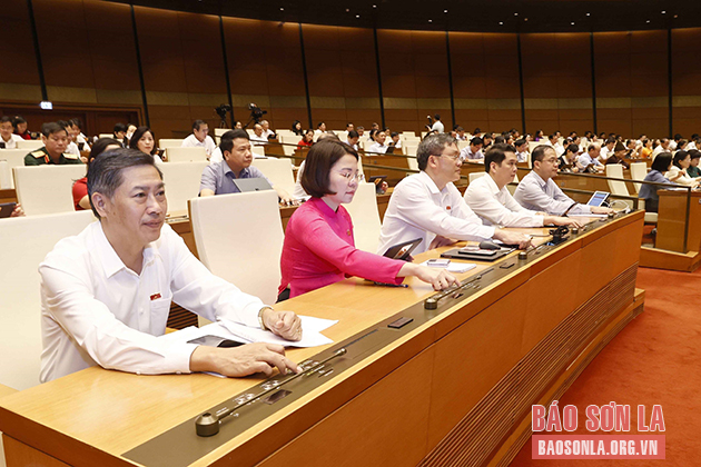 Đoàn đại biểu Quốc hội tỉnh Sơn La biểu quyết thông qua các nghị quyết tại Kỳ họp.