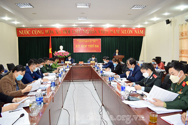 Kỳ họp thứ ba, HĐND huyện Mường La khóa XXI tại điểm cầu trung tâm huyện.