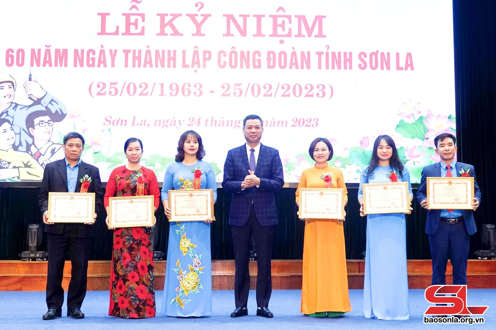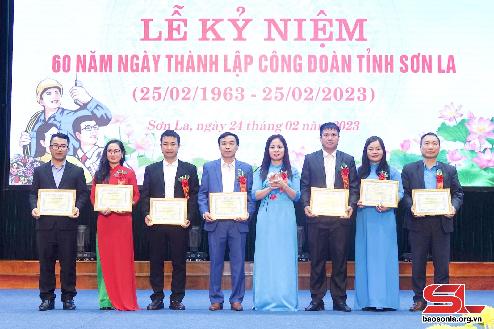 Tại Lễ kỷ niệm, Ban Thường vụ Tỉnh ủy tặng Công đoàn tỉnh Sơn La Bức trướng với dòng chữ: “Công đoàn Sơn La 60 năm đổi mới, sáng tạo; vì quyền, lợi ích hợp pháp, chính đáng của đoàn viên và người lao động”. UBND tỉnh tặng Bằng khen cho 7 cá nhân. Liên đoàn Lao động tỉnh biểu dương 60 đoàn viên, công nhân, viên chức, lao động tiêu biểu; tặng Bằng khen cho 26 cá nhân có thành tích xuất sắc trong phong trào thi đua “Lao động giỏi - Lao động sáng tạo” giai đoạn 2018-2022; trao giải thưởng cuộc thi trực tuyến tìm hiểu “Công đoàn Sơn La 60 năm xây dựng và phát triển” cho 2 tập thể, 19 cá nhân.