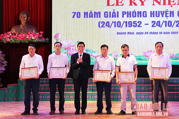 Phát biểu tại Lễ kỷ niệm, đồng chí Hoàng Quốc Khánh đề nghị Đảng bộ huyện phát huy truyền thống anh hùng cách mạng, tập trung cao thực hiện các đề án, nghị quyết, kết luận của Ban Thường vụ Tỉnh ủy để cụ thể hóa các mục tiêu Nghị quyết Đại hội Đảng bộ tỉnh và Đảng bộ huyện đã đề ra; hoàn thiện hệ thống kết cấu hạ tầng kinh tế - xã hội, gắn với khai thác tiềm năng, lợi thế thu hút đầu tư vào các lĩnh vực: nuôi trồng, chế biến thủy sản, du lịch, dịch vụ... trên lòng hồ Thủy điện Sơn La, góp phần thực hiện thắng lợi Nghị quyết số 14-NQ/TU ngày 26/7/2021 của Ban Thường vụ Tỉnh ủy về xây dựng huyện Quỳnh Nhai đạt chuẩn nông thôn mới vào năm 2025.