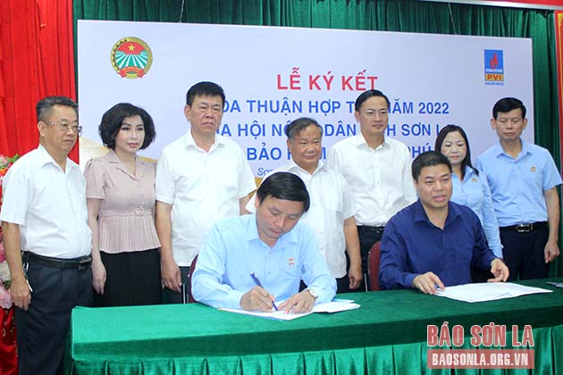 Lãnh đạo Hội Nông dân tỉnh và Công ty Bảo hiểm PVI Vĩnh Phú ký thỏa thuận hợp tác.
