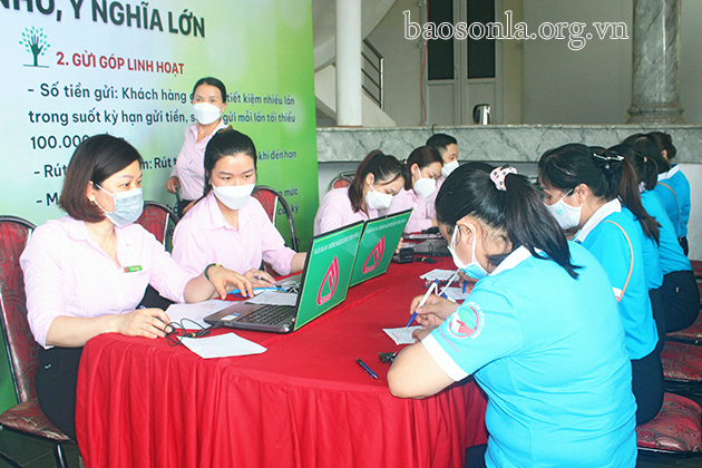 Các đại biểu giao dịch mở sổ tiết kiệm tại Lễ phát động.