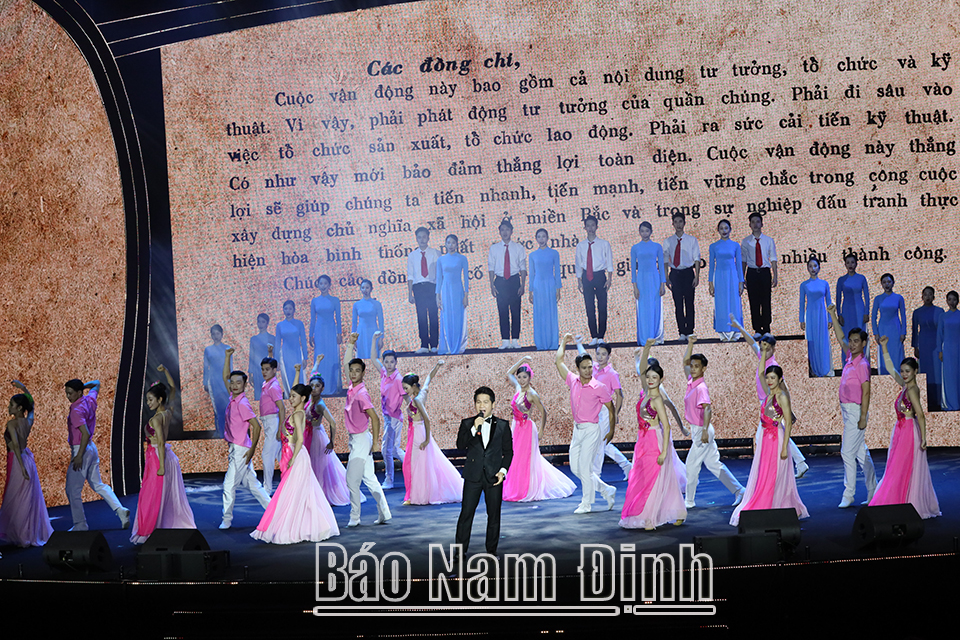 Tại buổi Lễ, các đại biểu đã được thưởng thức Chương trình nghệ thuật đặc sắc chào mừng kỷ niệm 60 năm Ngày Bác Hồ về thăm Nam Định. Chương trình được dàn dựng hoành tráng, công phu, với 3 phần: Nam Định nhớ Bác, Nam Định làm theo lời Bác và Nam Định - Khát vọng tương lai. Nội dung các tiết mục khắc hoạ rõ nét hình ảnh về Nam Định - vùng đất "địa linh, nhân kiệt" giàu truyền thống cách mạng; khẳng định tình cảm Bác dành cho Nam Định, Nam Định dành cho Bác; tái hiện hành trình 60 năm Nam Định làm theo lời Bác dạy, thành tựu nổi bật và những định hướng phát triển thời kỳ mới nhằm khai thác hiệu quả tiềm năng, vị thế của tỉnh, trọng tâm là lĩnh vực phát triển kinh tế biển và các ngành công nghiệp chủ lực hướng tới xây dựng quê hương Nam Định ngày càng giàu đẹp, văn minh.