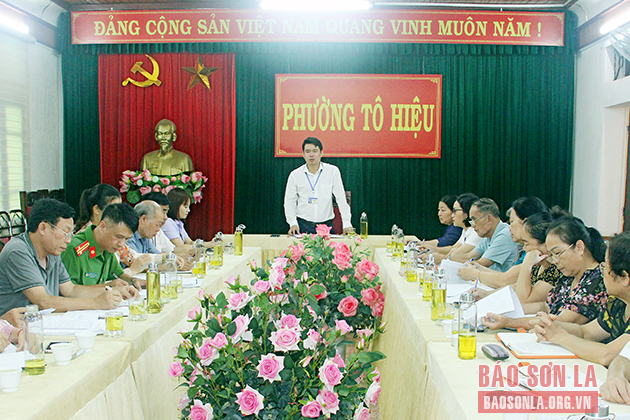 Bí thư Đảng ủy phường Tô Hiệu Đoàn Văn Thắng họp triển khai nhiệm vụ.