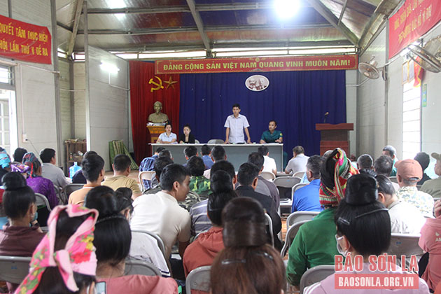 UBND xã Chiềng Ban, huyện Mai Sơn, lấy ý kiến của nhân dân trong việc sáp nhập tổ, bản, tiểu khu.